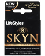 Height: 4.000Length: 2.750Diameter: 1.000SKYN Premium Polyisoprene Lubricated Condoms are made with SKYNFEEL material, a non-latex material that feels soft and natural, and provide an extraordinary sensitivity.SKYN Condoms deliver ultimate sensitivity in a breakthrough polyisoprene non-latex material. Clinically proven to enhance sensation. Soft and flexible for a more pleasurable and ergonomic fit . Natural color. 3 condoms per box.SHIP FROM : USASHIP TO : USA, CANADA