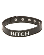 Get it just the way you or your partner likes it with the X-Play Talk Dirty to Me Collar - Bitch from Allure Lingerie. Spice things up in the bedroom and explore the world of bondage by adding this collar to your bedroom routine. Adjustable, with 5 snaps, this collar can fit almost any size.