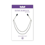 @SINCERELY This 20 inch (50.8cm) doubled strand of sparkling bling will give you a formal feeling while the rubber-tipped nipple clips serve as a constant reminder that all are entitled to feeling a little pain...