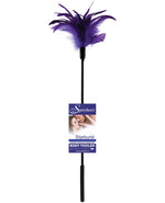 This tickler will bring the harlot out of your shrinking violet.A starburst of gorgeous violet rooster feathers adorns a 16-inch black wand enabling you to caress and titillate your partner. You'll never be short on sexy ideas thanks to the included guide that features plenty of naughty games and tips.Violet Starburst Tickler specifications:Material: Rooster feather, plastic stick, rubber capMeasurements: 16" (40.64 cm)