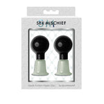 Nipple suckers are squeezable with flanged bases for extra suction. Bulb is designed to provide increased sensitivity and blood flow.
